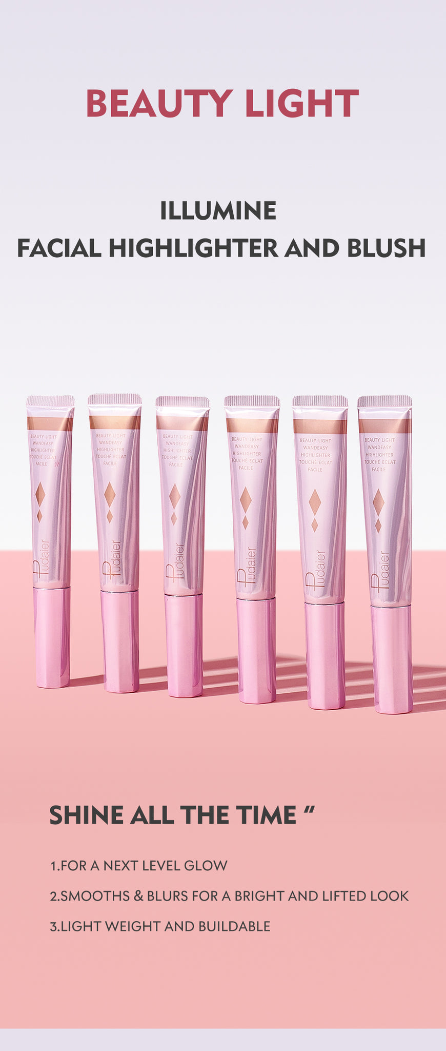 YOU SHINE GIRL - Shining glow from every angle! With great shimmering effect, the liquid highlighter can immediately lighten the skin, create a three-dimensional appearance. From daily to your special days, anywhere you go, this makeup stick can make your day perfect.
